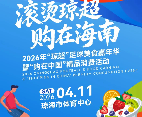 4月11日(周六),琼海市体育中心,答案现场揭晓。先记时间赛场旁就是超大沉浸式嘉年华,海南各地风味一次吃透:老字号小吃:清补凉、芒果肠粉、斑斓糕…甜品脑袋狂喜国货潮品+海南伴手礼:热带农产品、文创好物,自用送人都合适看完球,接着玩多家海南知名景区现场推介,正好顺手规划五一小长假行程。赛事+旅游,一趟全搞定。全网曝光超20.1亿,抖音+视频号话题播放量破2亿名称:2026年“琼超”足球美食嘉年华暨“购在中国”精品消费活动