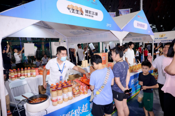 现场设置了5000平方米第二观赛现场,打造兼具烟火气与体验感的消费长廊,共吸引了琼海、海口、三亚、儋州、澄迈、保亭、陵水、文昌、临高、白沙、五指山等11个市县组团展示推广,邀请了罗牛山、南国、独凤轩、拾味馆、澳斯卡粮油、伊利、青岛啤酒、王老吉、东鹏特饮、三沙海参、世界水果之窗、城田食品、陵水好礼、保亭有礼、赶海临高、澄迈来一口等省内外知名品牌企业组团参展。以及铺前三婆糟粕醋、琼州糟粕醋等多家糟粕醋企业现场展示推广。