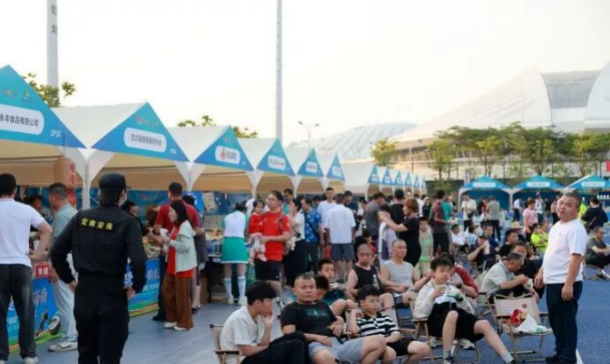 活动当天,琼海市体育中心内外人潮涌动、气氛热烈,赛场激情与展区烟火交相辉映,处处洋溢着浓厚的“琼超”之夜氛围。“第二观赛现场”约8100人齐聚,巨幕同步转播赛事进程,场上每一次传球、每一脚射门都牵动着观众情绪,欢呼声此起彼伏。活动现场人气鼎盛沸腾,充分展现了“琼超”赛事的集聚带动效应和“体育+美食+购物+文旅”融合消费场景的旺盛活力。据不完全统计,当日现场消费额达126万元。