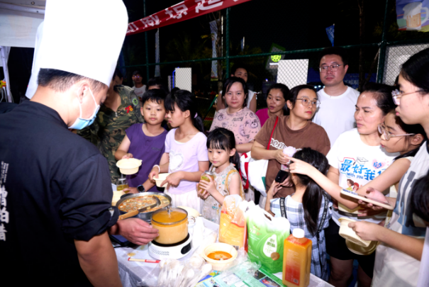 现场设置潮饮专区、特色美食专区、市县地标好物专区、糟粕醋专区等四大重点板块。让山海风味、黎苗风情与海岛优品在这里与足球琼超相遇。赛场上的呐喊、展区里的香气、灯光下的人潮彼此交融,让这个夜晚既有足球的热烈,也有琼州烟火的丰盛。