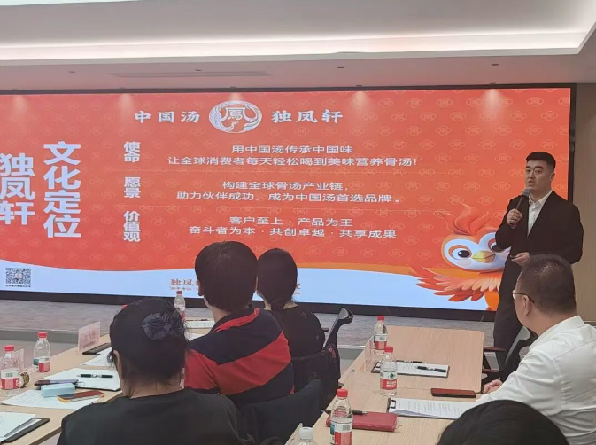 中熬汤业(海南)科技有限公司总经理刘鹏向与会代表详细介绍了企业发展历程、核心产品与技术优势,展现了其在汤业领域的专业积淀与创新活力。